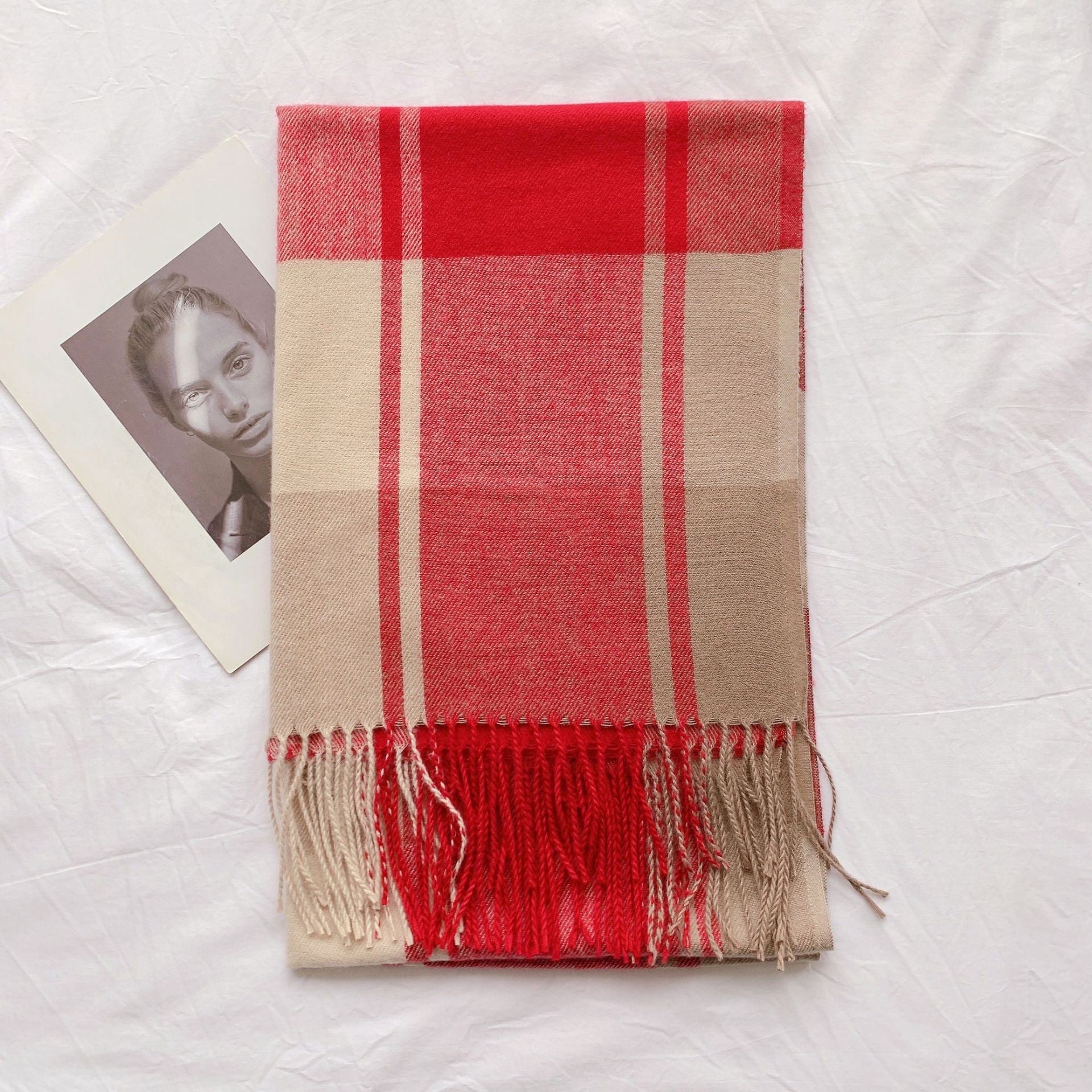 Details: - Material: Imitation cashmere - Colors: Brown, Red, Gray, Green, Blue, Pink, Khaki - Size: 185 x 65 cm - Features: Thick, warm, tasseled edges - Style: Japanese & Korean inspired