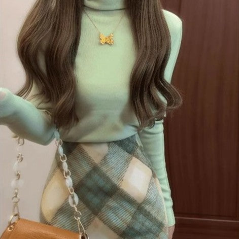 The Marisse set blends plush warmth with a structured aesthetic. Featuring a soft chenille turtleneck top and a matching plaid skirt, this two-piece ensemble suits transitional dressing with elevated ease. Crafted with spandex for comfort and stretch, it is offered in select pre-styled combinations to simplify your seasonal look.