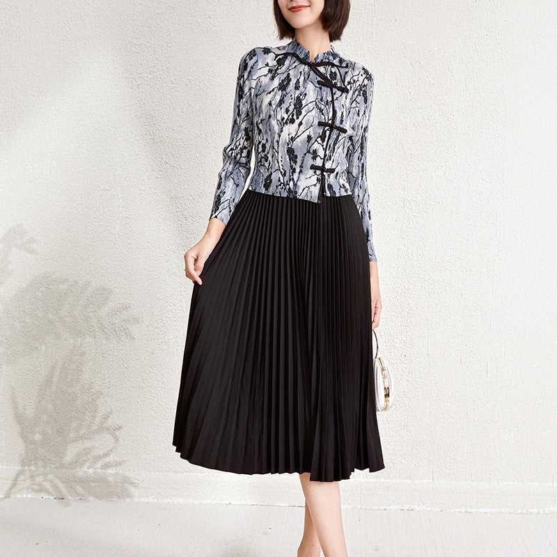 The Olyra dress delivers artistic flair through its ink-style floral print and high-waist silhouette. Designed in soft polyester with a faux two-piece construction, this midi dress offers flowy comfort and bohemian sophistication in every color option.