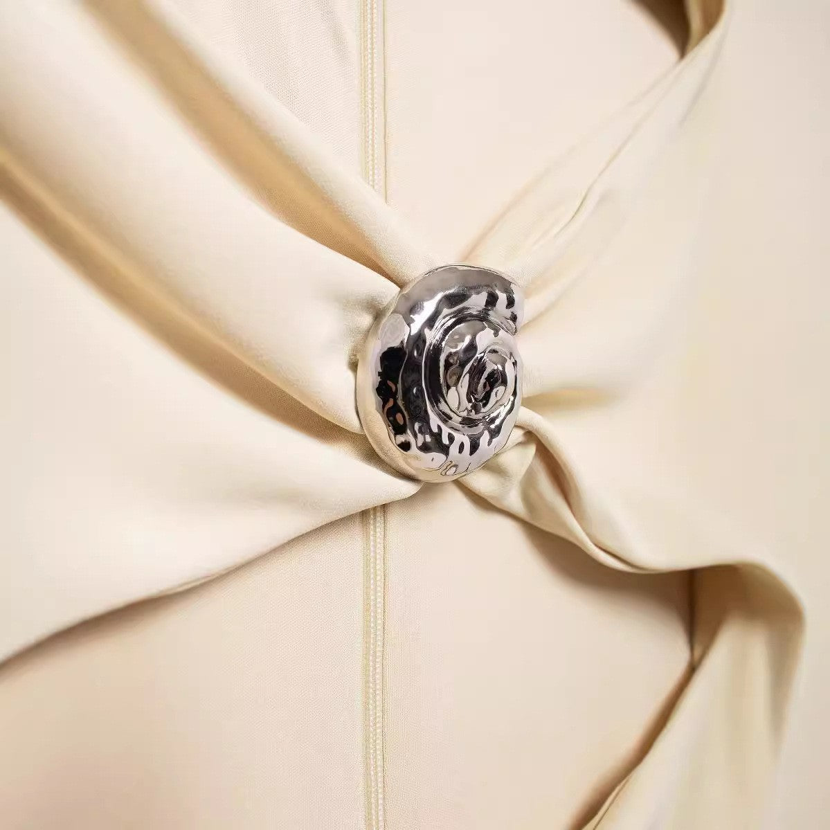 The Orlena Split Sheath Gown exudes modern allure with a sophisticated silhouette. This high-waisted, sleeveless dress is tailored in a soft beige apricot hue and features a front split for elevated movement. Designed with collage stitching and a slim fit, it's perfect for upscale evenings or elegant occasions.